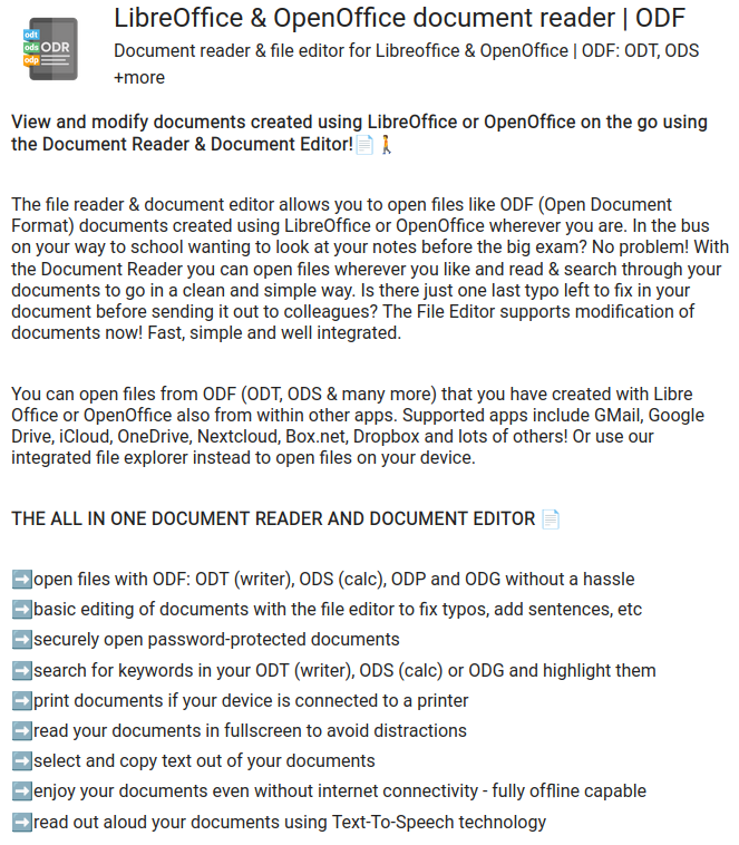 OpenDocument reader, a almost universal reader, that opens up to Photoshop or Autocad native files, but also bitmap pictures, Microsoft Office proprietary formats, PDF, ZIP, Apple iWork formats, and much more !